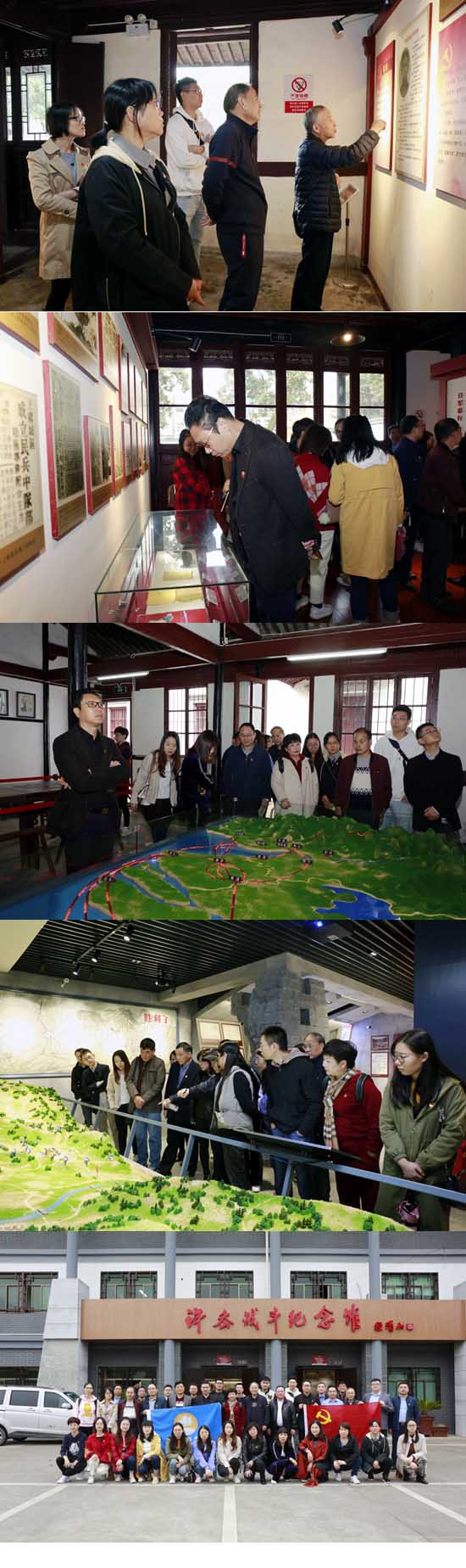 此次“初心之旅”的首站为绍兴市级红色旅游点——位于上虞区丰惠镇庙弄社区钱家弄23号的上虞革命史迹陈列馆,著名的浙东新四军北撤会议就在此处召开。北撤会议是新四军浙东区党委在抗战胜利后,于1945年9月23日在丰惠召开的一次非常重要的扩大会议。会议传达了中央指示,并就区委、行署及游击纵队如何北撤作了具体部署。召开北撤会议是我党在当时作出的重要战略决策,它不仅在政治上揭露了国民党反动派“假和谈、真内战”的阴谋,而且在军事上也为我军集中优势兵力,在长江以北地区进行大兵团作战创造条件。沿着展馆,全体人员一边认真听取讲解员的解说,一边观看馆内珍贵的史料和文物,对发生在家乡的这段革命历史有了更为深入的了解。