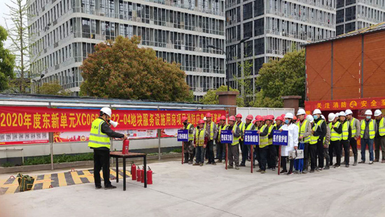 复工以来,随着现场施工人员的逐渐增多,施工现场动火作业及生活区用电的持续增加,加上春风吹拂,天干物燥,发生火灾的可能性大大增加。为此,在杭州分公司总经理陈建华的统一安排和部署下,分公司所属杭州东新单元XC0604-R22-04地块服务设施用房工程项目部于4月2日开展了一场春季消防应急演练,以提高复工以来项目部员工火灾防范意识,普及火灾常识,使工地全员准确掌握火灾逃生自救知识和技能,有效预防火灾事故发生。