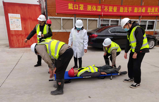 演习分物资准备、人员培训、灭火演练、逃生演练、应急救援等多个环节,并虚设着火点两处。下午一时许,随着两处着火点的起火燃烧,本次消防演练正式开始。首先由工作人员发出火灾事故警报,由应急救援指挥部立即启动消防应急预案,通知义务消防员及各组人员火速赶往现场,进行灭火及现场救援工作。在演习现场,大家分工明确,井然有序,在最短的时间内完成了抢险灭火,并完成了人员疏散、伤员救护等各项工作。整个演练组织有力,紧张有序,充分达到了演练预期目的,提高了项目部应对突发事件的应急能力,增强了火灾发生时的自我防护能力,同时使项目全员团队凝聚力得到了升华。