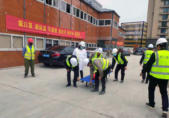 演习前,项目部专门成立消防演练指挥中心,由项目负责人杨宝良经理担任总指挥,负责应急演练总体安排,并召开了消防演练专项会议,对本次演习作出指示和传达,同时具体讲解消防知识和灭火器等消防器材的使用方法,共有42名项目部及一线施工人员分医疗抢救组、后勤保障组、应急救援组、警戒保卫组等四个组参加本次演练,工地全员全程参观。