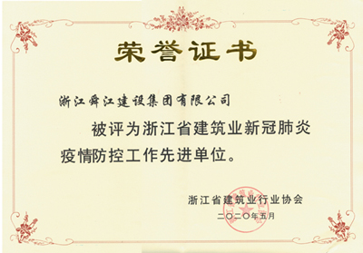 近日,浙江省建筑业行业协会公布和表彰了全省建筑业新冠肺炎疫情防控工作先进单位和先进个人,我建设集团荣获该项工作先进单位荣誉称号。