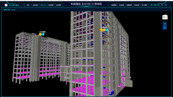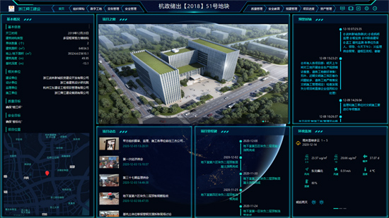 该项目“智慧工地”建设以“项目动态、数字化工地(BIM)、劳务管理、质量管理、安全管理、深基坑监测(实时更新)、慧眼AI、安全教育、党建管理、项目进度管理”十大模块为主干,结合现场配套“硬件”,对项目进行全面、系统、高效、严谨的管控。“智慧平台”也将各个应用碎片数据汇聚组合并进行分析,构建可视化数字工地,真实反映项目实况。