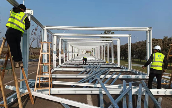 誓师动员会结束后,项目团队立即赶往位于五星西路终点处的隔离点施工现场,与后续到达的电力、水务、污水处理等部门单位开展积极联通,落实项目施工前的各项准备工作。至中午12时,用于项目建设的第一批物资运抵现场,专业安装人员分别由湖州、吴江、上海等地逆行而来,陆续抵临现场,建设集团各分公司积极支援,踊跃参与。一分公司总经理李顺来主动请缨,从分公司内部抽调专业安装人员支援现场,从而拉开了隔离点项目建设的序幕。按照区委区政府要求,集团公司将在一星期之内在隔离点内搭建数千套隔离房,可有效缓解隔离房短缺现象。