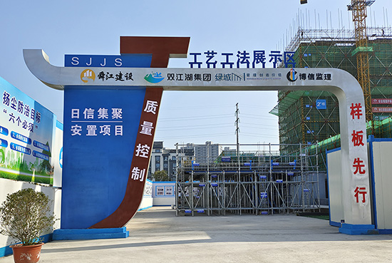 项目部还通过样板引路、方案先行和标准化工艺落地的方式,在保证工程品质的前提下,快速推进项目进度,以确保老百姓住上有内涵、有品质的好房子。通过工艺工法、标准节点样板展示和施工方案二维码、技术交底二维码上墙的方式,不断细化完善施工方法和工艺,指导作业班组和施工人员“按图索骥”,高效快捷地完成施工作业。通过样板引路、方案先行,确保工程项目一次成优。