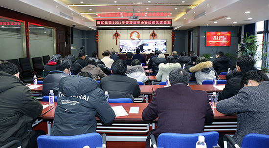 1月25日,小年夜,集团公司以上虞、上海、西安三地视频连线方式,召开2021年管理层年会暨抗疫先进表彰会,总部管理层及西安分公司全员参加会议。会议表彰2021年抗疫先进集体和个人,回顾总结2021年工作,提出2022年工作思路及发展目标。控股集团李金奎董事长、建设集团李标董事长预祝全体舜江人及其家属新春快乐,建设集团李斌总经理作2021年度工作报告,党建指导员邵百尧宣读抗疫先进表彰文件,建设集团谢惠珍副总主持会议,抗疫特别贡献奖获得者何柏灿作典型发言。