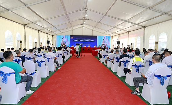 7月27日上午,由义乌市住建局、义乌市双江湖开发集团有限公司主办,我建设集团承办的2022年度义乌全市建设工程质量安全提升现场观摩会在我公司义乌佛堂镇日信区块集聚安置工程二标段项目施工现场隆重举行。义乌市住建局、市应急管理局、市质安监站、相关镇街领导及本项目各参建单位主要领导出席活动,全市建设、代建、监理、施工单位负责人及其代表,各镇街建设办负责人,各平台、公司质量安全负责人,全市一二级施工企业安全负责人等至现场参加活动,共同交流学习工程质量安全提升优秀经验做法。义乌全市项目建设、监理、施工单位相关人员及各地建筑界人士近3000人通过视频直播及筑脸网友情转播观看现场实况。我建设集团总经理李斌、副总经理顾天标、义乌分公司总经理徐福星等参加活动。